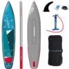 The AdventurAir comes with 1x 9″ fin, 1x 10″ fin, 1x Double Action Pump and 1x Adventure Edition Roller Bag.